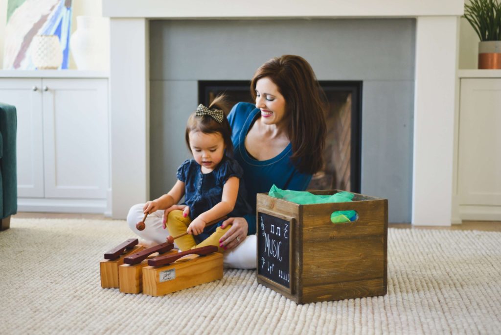 You can purchase simple instruments (like the ones pictured above) through Musik at Home so that your kids can play along with the songs and participate in the musical activities … or you can use what you have at home and your kids will still be quiet happy :).