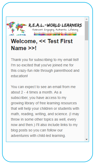 Unfortunately, this will probably go to your Spam or Promotions tab (if you’re using gmail). 🙁 Please look for this first newsletter from me and move it to your main inbox so that you can continue getting my newsletter emails. You can do this by clicking on the star next to the email address (if you’re using gmail – not sure if it works the same way for others?) or add my email address (sandra@realworldlearners.com) to your safe addresses list.