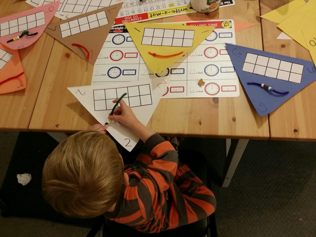 While they watched that, my teacher brain started spinning, thinking of ways I could come up with a craft to help both boys practice number recognition and counting skills.